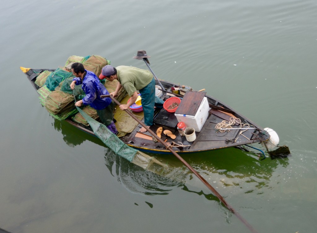 Today we decided to experience old town in the early morning so we were up at 5:00 a.m. to meet up with Fred from Travel Photography Workshop. We thought having a professional photographer as our guide would be informative and interesting. Fred is Canadian, has lived in Vietnam for 13 years, and speaks fluent Vietnamese. He has such a special way of interacting with the locals which made it even more enjoyable. Fred made changes to our camera settings to make it simpler for us, while at the same time taking advantage of key features of our cameras. As we wandered through old town he gave us so many great ideas for the composition of our pictures. Since it had rained during the night, there were many puddles and we now know how to use puddles to create an interesting picture. We’ll have lots of opportunity to practice what we learned over the next few months.