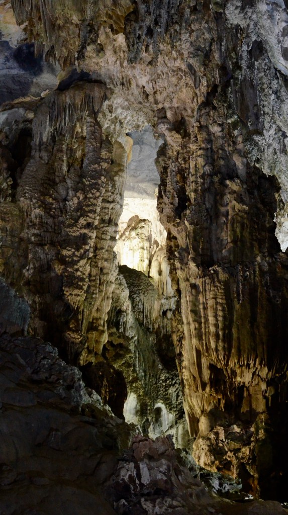 Phong Nha Easy Riders – although they didn’t speak English, between Google Translator and charades we did wellWe walked down hundreds of steps from the entrance to the bottom of the cave. The picture only shows a bit of the distance we descended. Once at the bottom, the paths meandered through the formations.The pictures don’t show the depth and beauty of the cave, but hopefully it will give you an idea of what we saw.Paradise Cave is the largest dry cave in Asia and is known as one of the most beautiful caves in the world. It is by far the most beautiful that we have ever seen.There were few people so we always had an unobstructed view. There were so many different colours.
