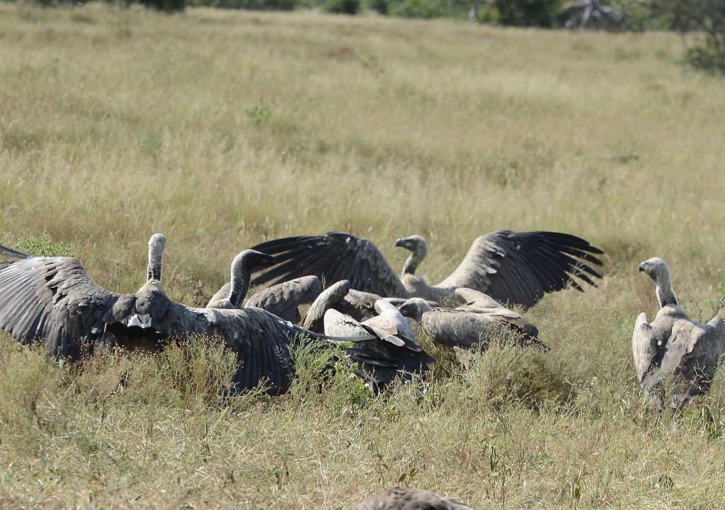 Our guide/tracker found two female lions and their cubs finishing off a kill. The young ones were full and happy.Love the cubsThe vultures came in to clean up what was leftover. One of the female “moms” would scare them away, but they would soon be back.Vultures were just waiting to swoop in again and pick up whatever scraps were left.Mom returning after scaring away the vultures.The hyena was lurking in the bushes, but decided there was not enough left to bother.Not easy to spot in the bush.